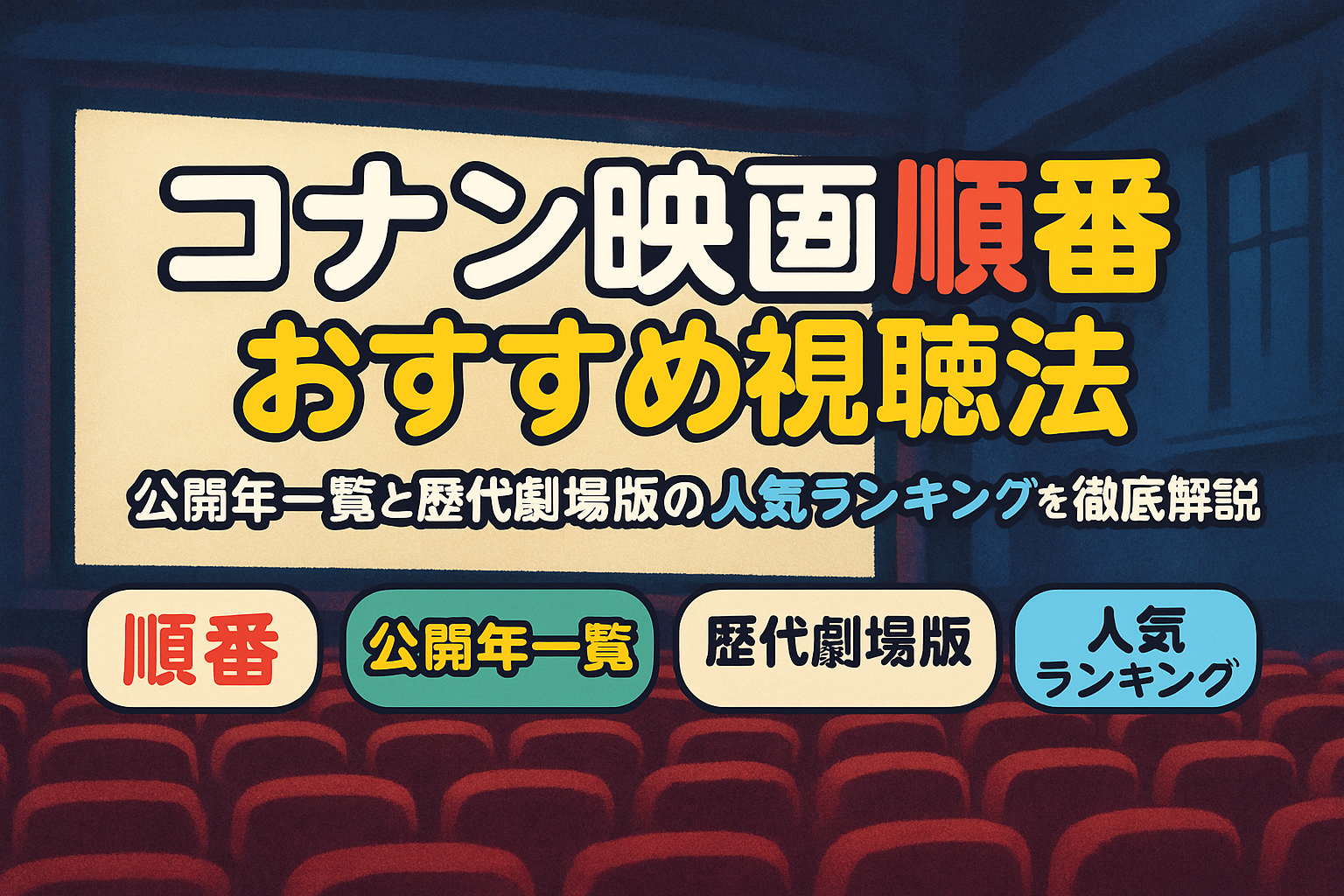 劇場版名探偵コナンは、1997年から毎年公開されている大人気アニメ映画シリーズです。最新作を含め、数多くの作品が公開されてきました。コナン映画の順番を正しく把握することで、シリーズの流れやキャラクターの成長、組織との対決などを一層楽しめます。まずは歴代の全作品を公開年順に一覧で整理し、各タイトルと読み方もわかりやすく紹介します。