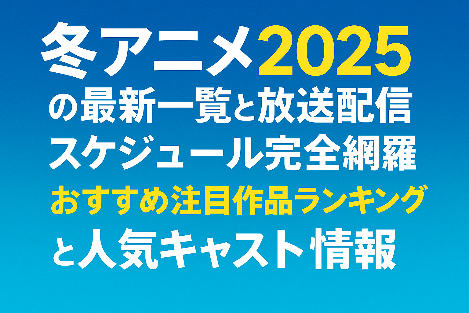 本記事では、2025年冬アニメの全作品リストから放送・配信スケジュール、注目作のランキング、最新の口コミや公式グッズ情報まで、徹底的に網羅。ジャンル別のおすすめポイントや、地域ごとの視聴環境の違い、過去のデータを踏まえたランキング分析も掲載しています。今期注目の声優・スタッフや音楽情報も詳しく解説。